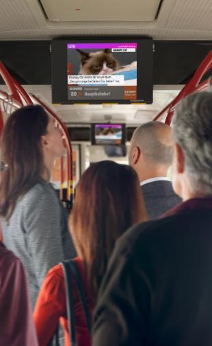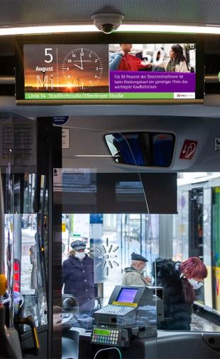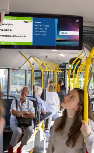 Seit Ende 2022 sind Salzburger Busse und Haltestellen mit INFOSCREENs ausgestattet und erreichen täglich über 40.000 Menschen mit einem vielseitigen Programm. Mit Nachrichten und Kulturinhalten sowie einem attraktiven Werbeangebot verkürzen die Bildschirme Wartezeiten und erweitern die Digital-out-of-Home-Landschaft der Stadt.
