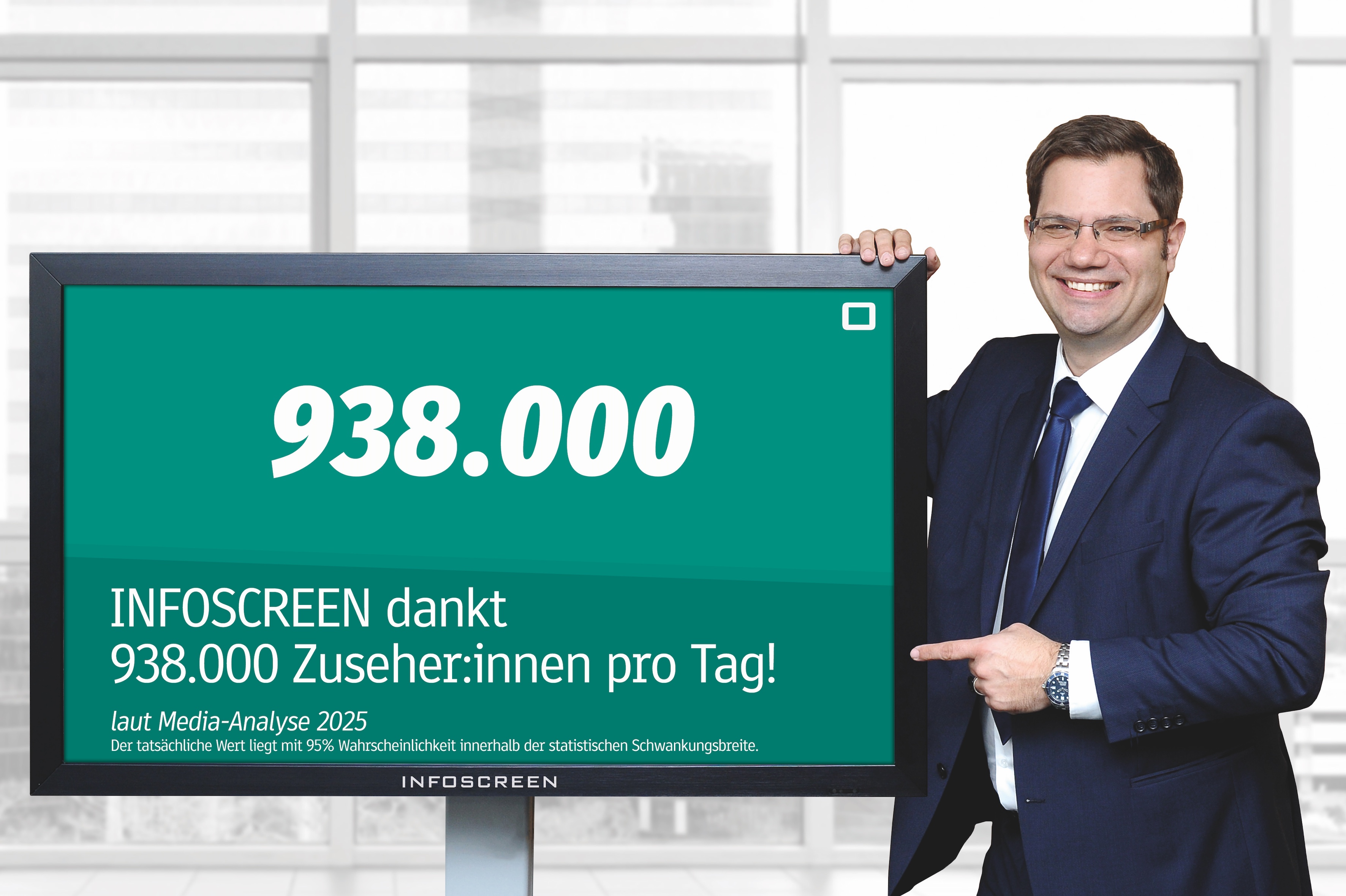 Wien, April 2026 – Die aktuellen Daten der Media-Analyse (MA 2025) bestätigen abermals den Wachstumskurs von INFOSCREEN. Exakt 938.000 Zuseherinnen und Zuseher halten sich täglich mit dem ÖFFI-TV auf dem Laufenden. Das bedeutet einen neuen Reichweitenrekord. Erstmals knackt INFOSCREEN damit die 12-Prozent-Marke bei der nationalen Tagesreichweite. Deutlich zugelegt hat INFOSCREEN auch in Wien. Nach zuletzt 32 Prozent steigt die Tagesreichweite auf 34,2 Prozent. Das ist ein Sprung um 37.000 Zuseher:innen auf nunmehr 538.000. Gewohnt stark ist das ÖFFI-TV bei jener Zielgruppe, die traditionelle Medien nur schwer erreichen: 42,3 Prozent der 14- bis 29-Jährigen informieren sich täglich mit INFOSCREEN über das Tagesgeschehen, Kultur, Sport und Wetter. Seit 09. April arbeitet auch der Mediaplaner von INFOSCREEN, mit dem sich binnen weniger Minuten nationale oder regionale Werbekampagnen entwerfen lassen, mit den erfreulichen neuen Reichweitendaten.